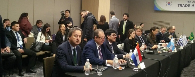 Entre los días 1 al 6 de abril, tuvo lugar en la Ciudad de Seúl, República de Corea, la II Ronda de Negociaciones para un Acuerdo de Libre Comercio entre el MERCOSUR y la República de Corea. Al respecto, en el capítulo de trato nacional para acceso a mercados, cuya coordinación nacional la tiene el Ministerio de Hacienda, fue aprobada las modalidades y procedimientos para la elaboración de las ofertas de bienes sujeta a liberación comercial entre ambas partes, así como también tuvieron lugar avances sustanciales en la redacción del texto normativo de dicho capitulo. En este sentido, se acordó realizar el primer intercambio de ofertas de bienes el 19 de junio del corriente año que involucrara una cobertura sustancial del comercio bilateral entre ambas economías. Las cuestiones pendientes y los respectivos intercambios de información tendrán lugar de manera intercesional previa a la III Ronda de Negociaciones que se desarrollara en Montevideo, Uruguay del 8 al 12 de julio del corriente año. Paraguay y la República de Corea son economías complementarias y el comercio bilateral presenta mucha potencialidad. En efecto, la participación de República de Corea en el comercio total del Paraguay es marginal, el país asiático solo representa el 2% de las importaciones totales y 1% de las exportaciones totales de nuestro país. Por otro lado, Paraguay tiene una cuota de exportación de 0,02% en la República de Corea. Las exportaciones de Paraguay a Corea del Sur crecieron en el periodo 2013-2017, 14% debido principalmente al incremento en la exportación de maíz en grano. Sin embargo, en el 2018, las exportaciones cayeron 70% debido a los menores envíos de granos de soja y maíz. En el mismo año, las importaciones aumentaron en 3% debido a las mayores compras de automóviles y aparatos eléctricos. Los principales productos con potencial de exportación a la República de Corea son: los pellets de soja, la carne bovina, el aceite de soja, el arroz descascarillado, entre otros rubros. El Ministerio de Hacienda estuvo representado por Econ. Raul Dominguez Torres, Jefe de Departamento de Convenios Comerciales de la Dirección de Integración, dependiente de la Subsecretaria de Estado de Economía. Fuente: Economía
